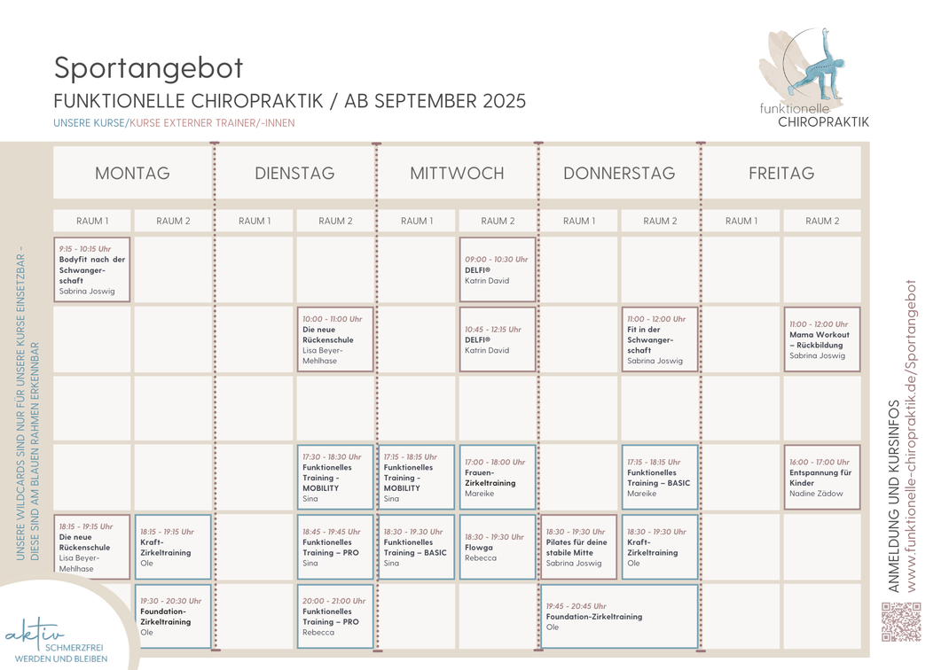 Hier finden Sie eine detaillierte Kursbeschreibung, Intensitätsstufen und die jeweilige Kursleitung.